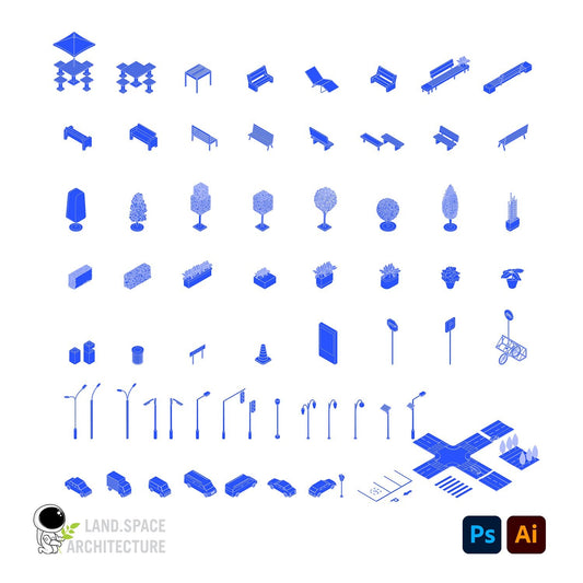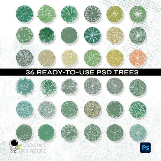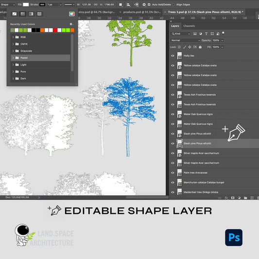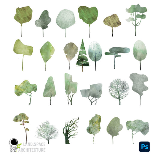 Plant Library for 68 PNG trees and 79 PNG shrubs, and source file in the tutorial
