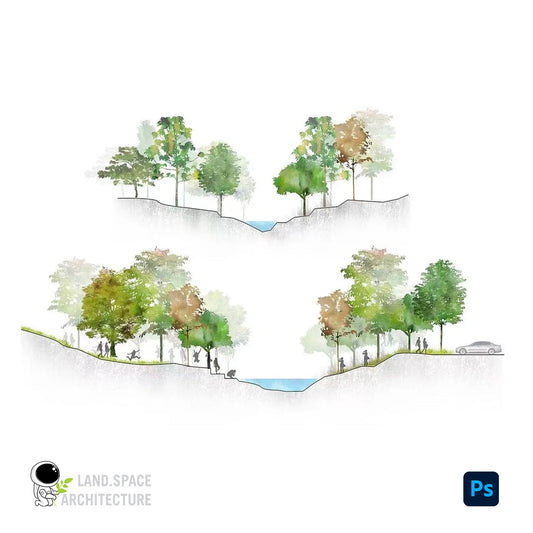 Photoshop Trees Silhouettes, Cut soils, Roots, Environments etc. Landscape Design Bundle