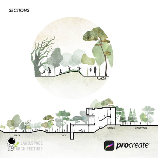 Watercolor Procreate Top View Tree Brushes for Landscape Plan on iPad